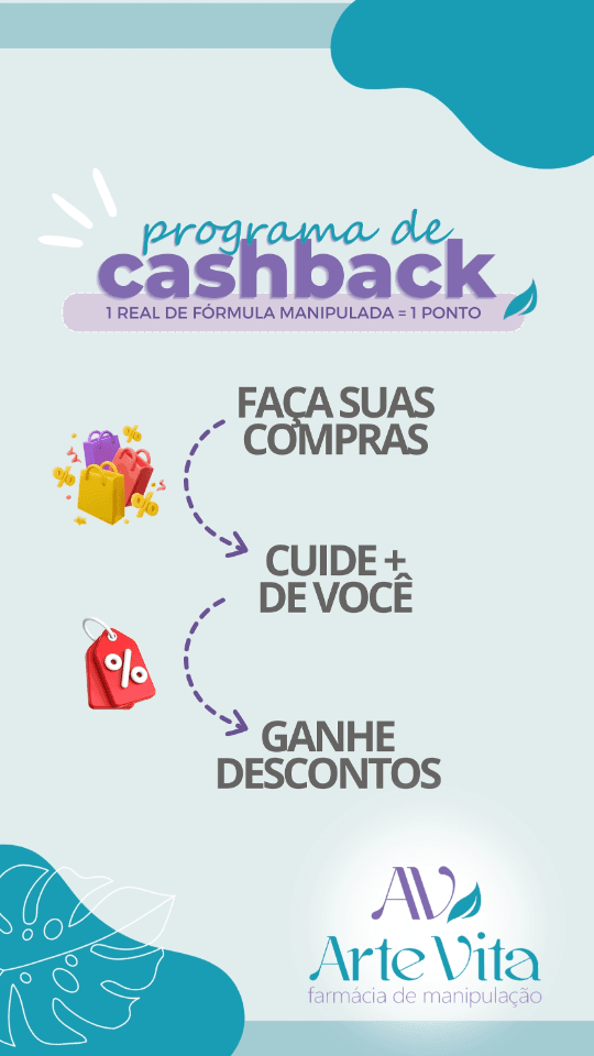 Seja muito bem vindo ao nosso programa CASHBACK! É um programa que oferece DESCONTOS e PRÊMIOS em fórmulas manipuladas para nossos clientes mais fiéis!